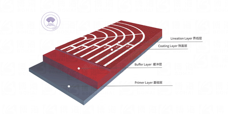 由微發(fā)泡閉孔技術(shù)的聚氨酯底膠鋪設(shè)而成,為世界田徑(國(guó)際田聯(lián))認(rèn)可推薦為各大型國(guó)際賽事運(yùn)動(dòng)員競(jìng)賽和訓(xùn)練專用場(chǎng)地類型,耐高低溫、沖擊吸收。